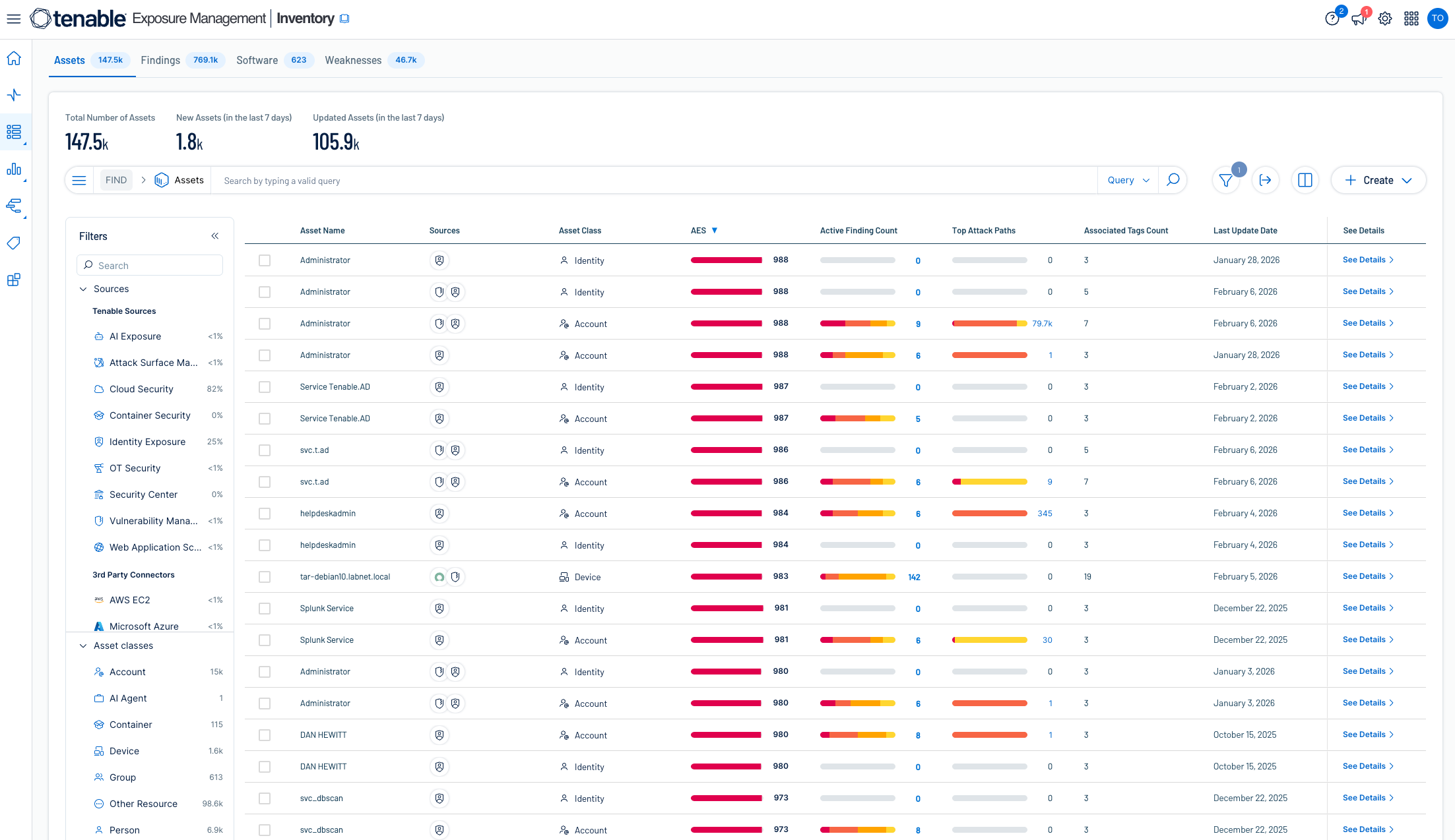 Lassen Sie nicht zu, dass Identitätsrisiken oder Cloud-Fehlkonfigurationen hinter Software-Schwachstellen verborgen bleiben. Normalisieren Sie mit Tenable One sämtliche Gefährdungen in einem zentralen Inventar, um Risiken über Ihre gesamte Angriffsfläche hinweg zu managen.